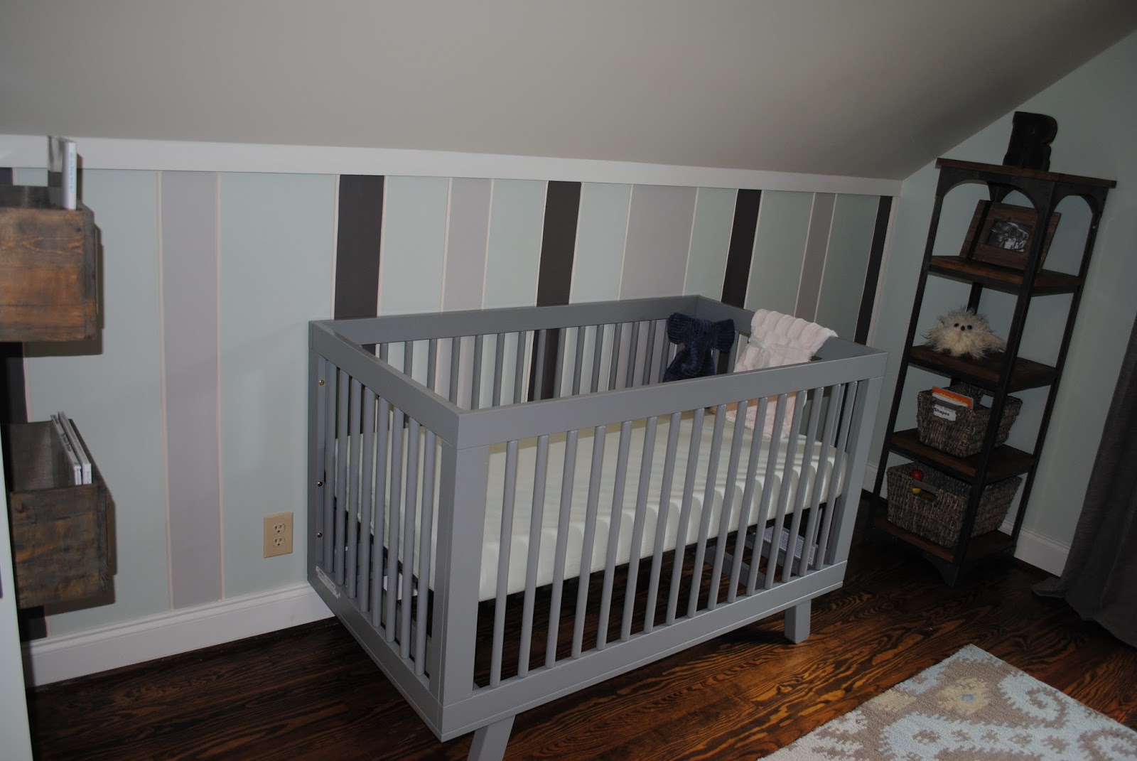A combination of wide and narrow painted stripes on wood paneling make an interesting look.