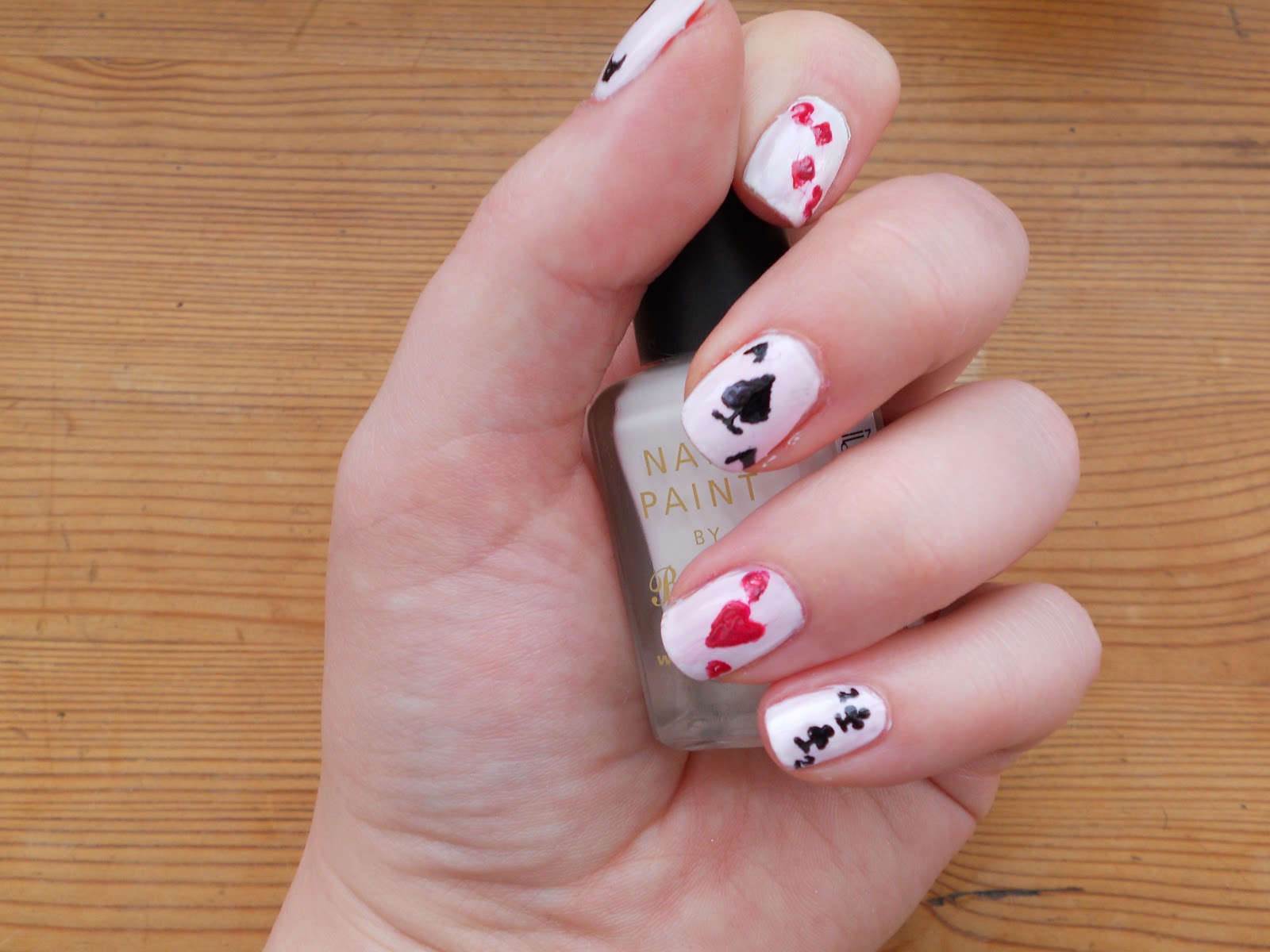 While other white nails have the whole cards on them, this lucky lady just took the card symbols themselves and puts them on her nails instead of having the cards. What do you all think of these nails?