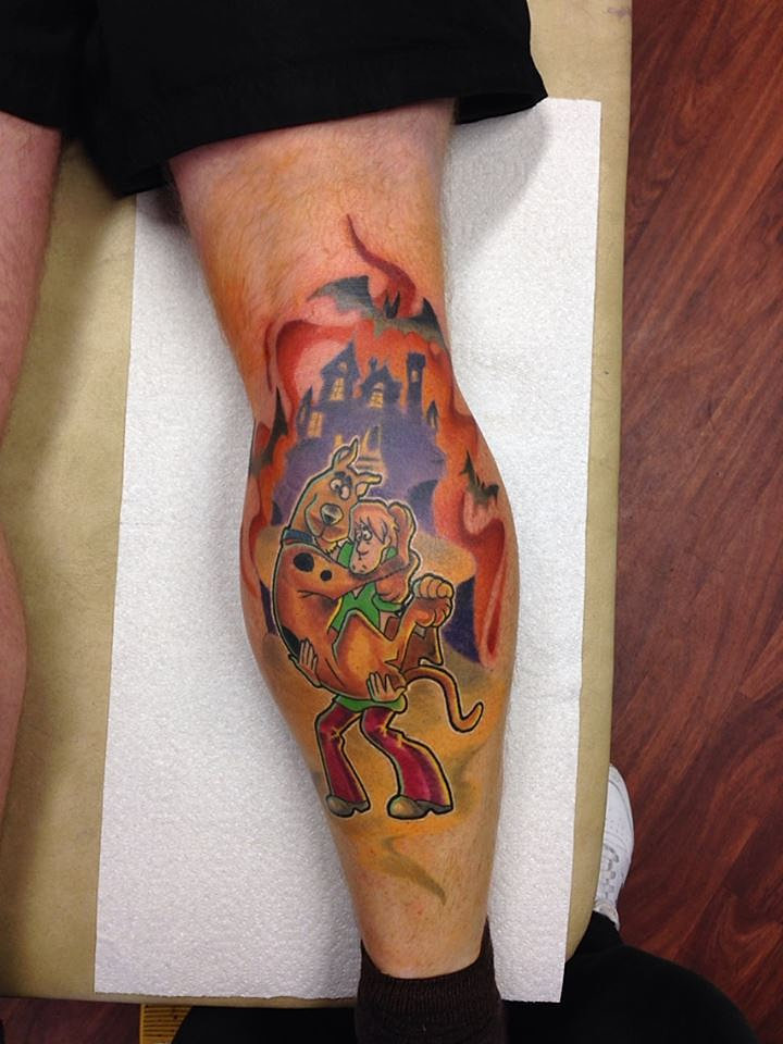 There is nothing funnier than when Scooby Doo laughs, and this leg tattoo captures him laughing in the most perfect, and hilarious, way ever!